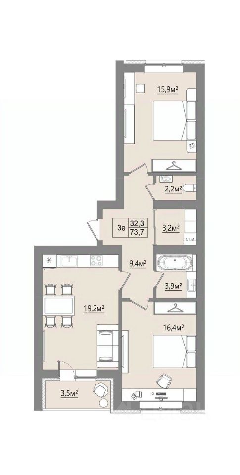 Продаётся 2-комнатная квартира в строящемся доме (Дом 1), срок сдачи: I-кв. 2027, общей площадью 71.95 кв.м., на 1 этаже. Новый жилой комплекс "Микрорайон Благодатный" от Специализированного застройщика "ВИТ-СТРОЙ" расположен по адресу: Воронежская обл., с. Ямное, по ул. Графа Орлова.