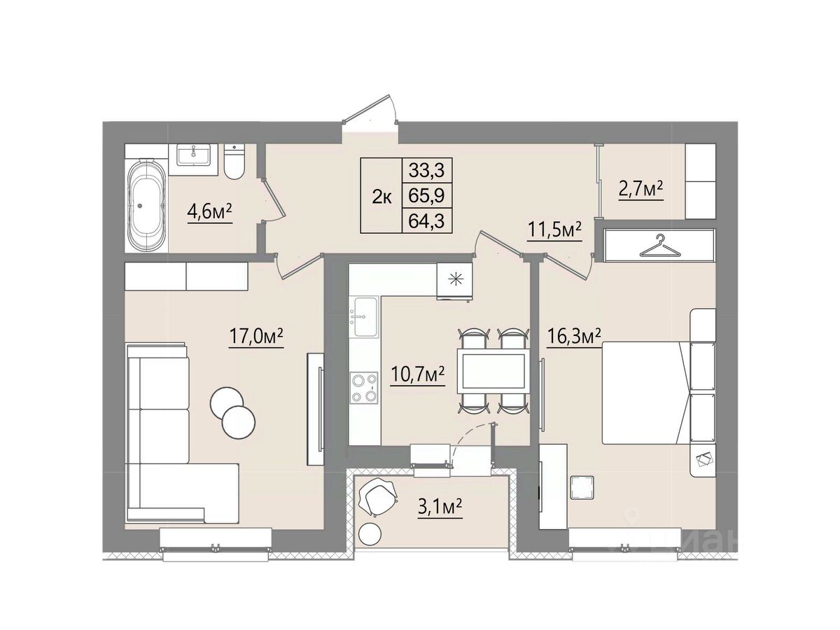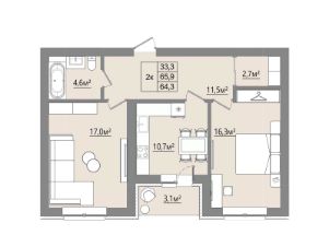 Продаётся 2-комнатная квартира в строящемся доме (Дом 1), срок сдачи: I-кв. 2027, общей площадью 64.35 кв.м., на 2 этаже. Новый жилой комплекс "Микрорайон Благодатный" от Специализированного застройщика "ВИТ-СТРОЙ" расположен по адресу: Воронежская обл., с. Ямное, по ул. Графа Орлова.