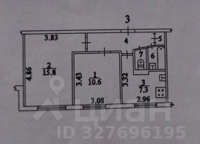 Общая площадь: 43,2кв.м.