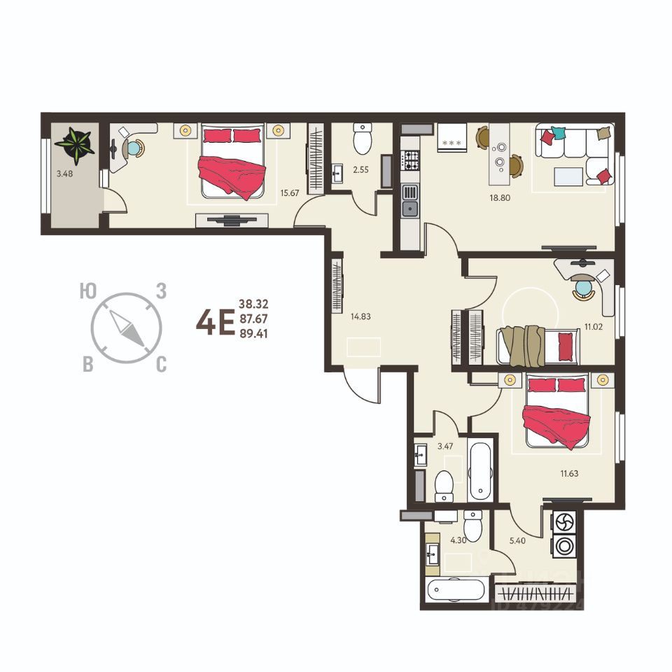 Продаётся 3-комнатная квартира в строящемся доме (Позиция 14), срок сдачи: IV-кв. 2026, общей площадью 89.41 кв.м., на 2 этаже. О ПРОЕКТЕ