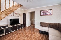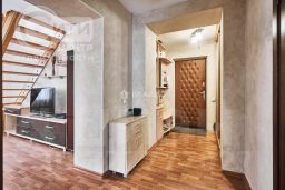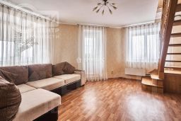 Квартира двухэтажная! Общая площадь 96,4 м2. На 1-ом эт. кухня -14 м2; 2 комнаты-спальни на 2-ом этаже (16,5 и 19,0 м2), гостиная на 1 эт. (18м2) с выходом на застекленную, отделанную вагонкой лоджию (3,5 м2); комната 14,5 м2 на 2-ом эт. с выходом на аналогичную лоджию, которую можно использовать под кабинет, библиотеку, комнату для гостей.