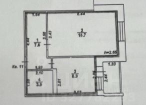Общая площадь составляет 39.1 кв. м, из которых жилая занимает 18.7 кв.