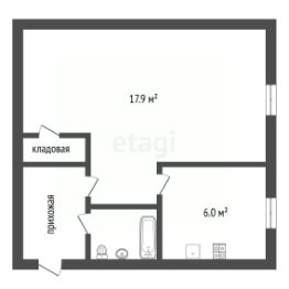 Большая жилая комната 17,8 м2, площадь и планировка которой позволит сделать вам комфортное зонирование для работы и отдыха, кухня 6 м2, санузел совмещённый 3 м2, коридор 2,7 м2, также есть кладовая 0,7 м2.