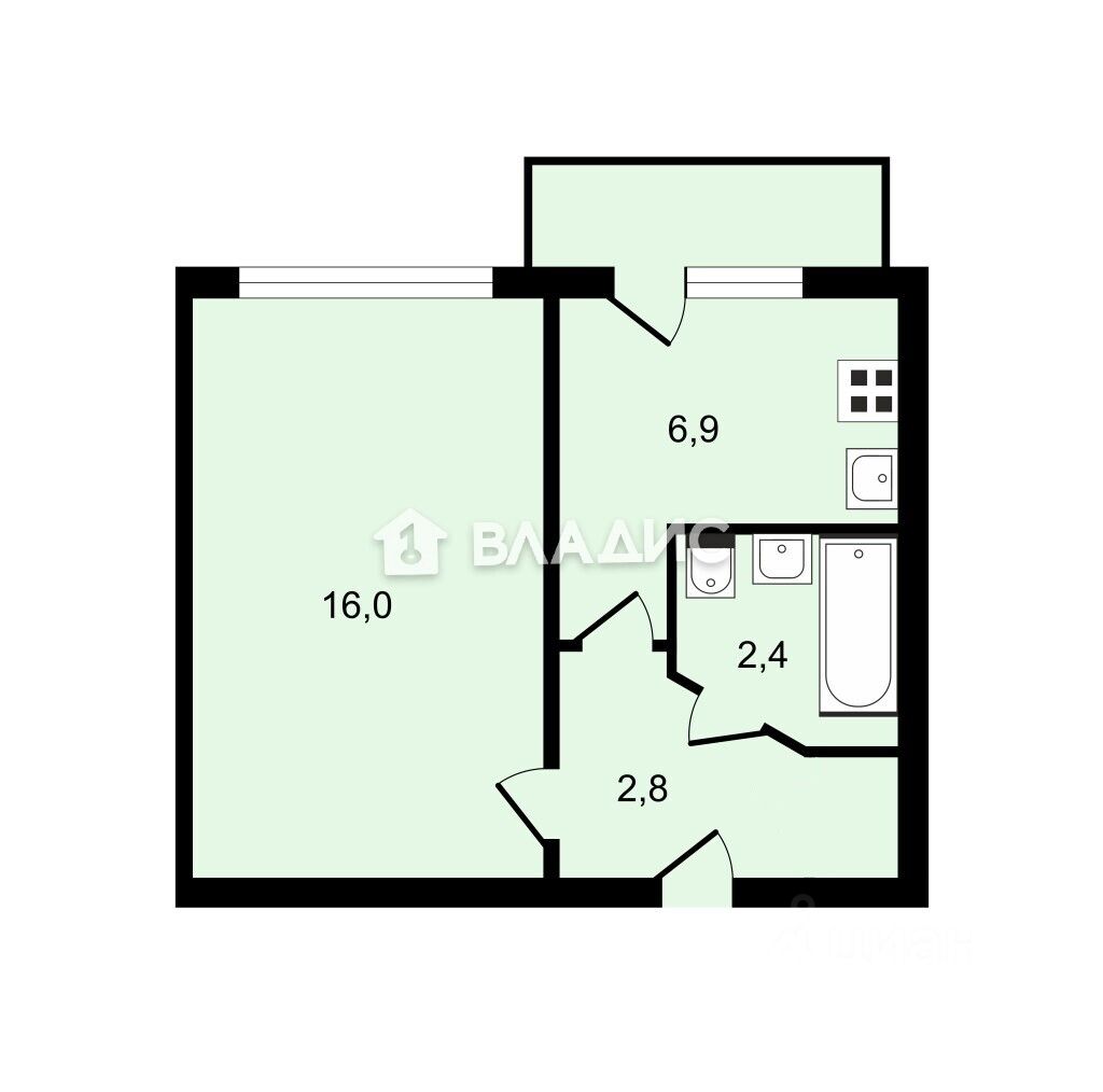 - площадь квартиры 28,7 кв.м., без учёта балкона, площадь которого 4 кв.м.