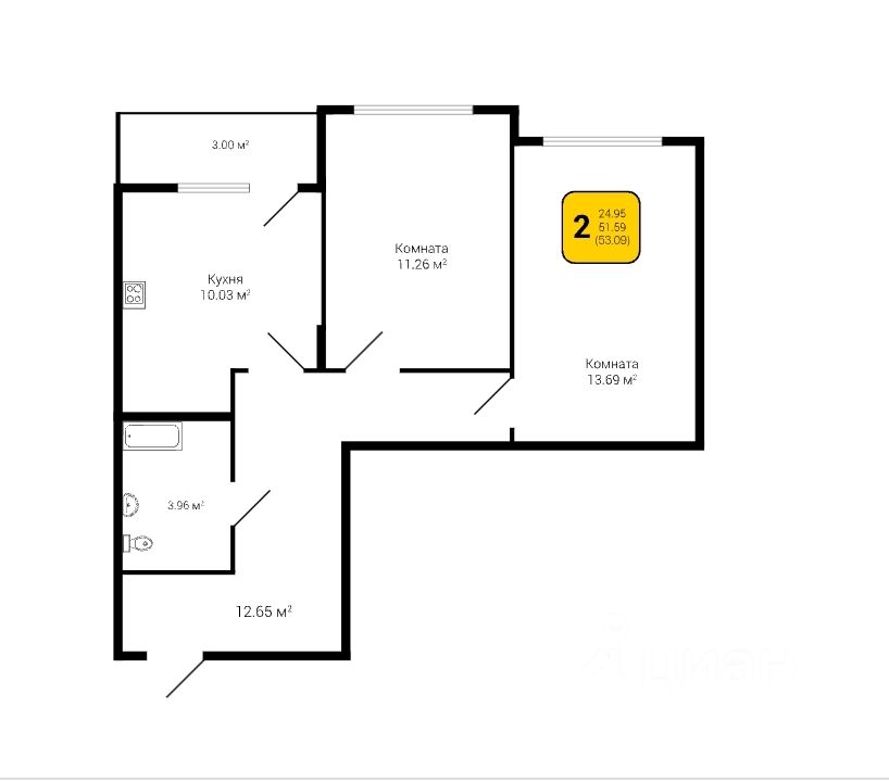 53,09 м²