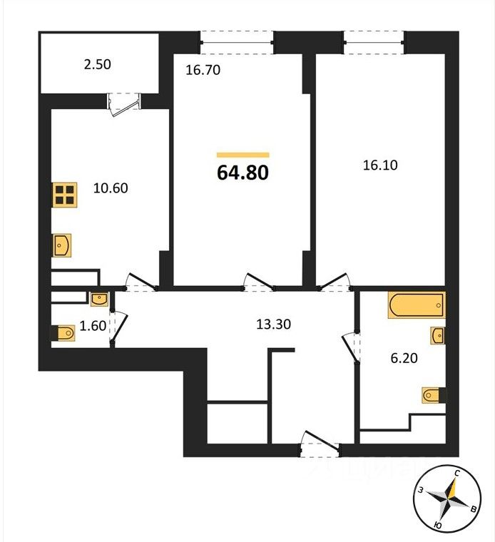 1 совмещенный, 1 раздельный