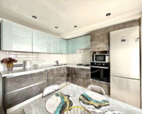 Квартира формата евро-трешка. Сделан капитальный ремонт: замена всей проводки в квартире, заменены стояки и трубы на пластиковые, в том числе и у соседей этажами выше и ниже. На полу делалась стяжка, стены все выровнены, покрыты декоративной штукатуркой. Во всех комнатах постелен ламинат, санузлы и кухня отделаны плиткой с теплым полом, благодаря чему, очень комфортно ходить босиком.