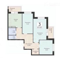 Общая площадь 67,63 кв.м с продуманной планировкой: