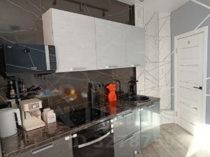 В квартире сделан дизайнерский ремонт. На кухне остается вся мебель, текстиль и бытовая техника (кроме холодильника и микроволновой печи). Из комнаты выход на просторную лоджию со встроенной системой хранения. В комнате остается диван, шторы и кондиционер. В коридоре остаются оба шкафа и вешалка. Низкие коммунальные платежи.