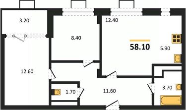 Квартира: 2 к 58,10 кв.м., 12 этаж в комплексе Ключи CLUB, 2 очередь, корп.2, сдача: 4кв. , этажей: 14, адрес Воронеж г., Остужева ул., д. 52/5, Застройщик: Новый код.
