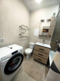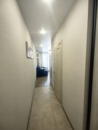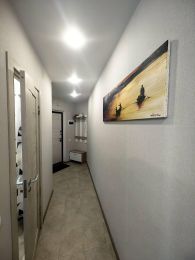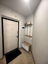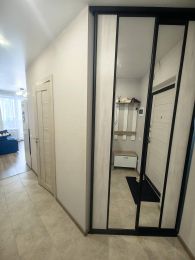 Квартира полностью обустроена и готова для проживания. Новым собственникам остается очень функциональный кухонный гарнитур с техникой, гардеробная, кондиционер, прихожая.