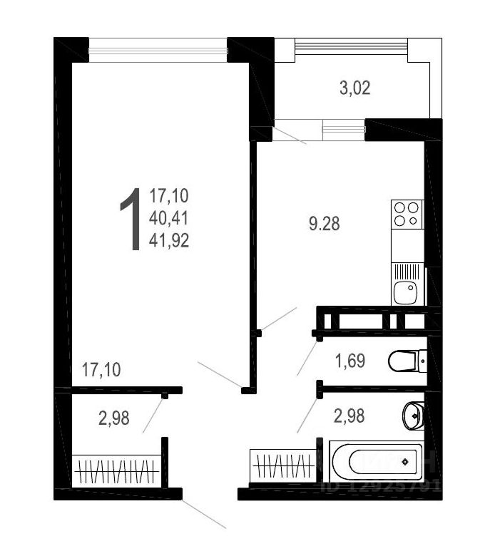 Общая площадь41,92 м²