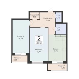Общая площадь60,39 м²