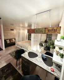 Уютная и светлая квартира с продуманной планировкой и уникальным дизайнерским решением. Интерьер выполнен с элементами художественной мастерской — пространство с особой атмосферой, где каждая деталь вдохновляет. Здесь чувствуется дух творчества и свободы, идеально подходящий для истинного городского жителя, ценящего стиль, индивидуальность и ритм центра.