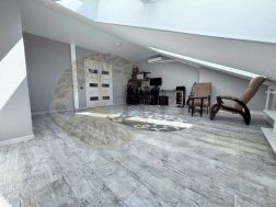 Основное — просторно, светло, удобно. • Около 115 кв.м по полу благодаря интересной планировке с уютными скошенными потолками. • Окна на две стороны света — весь день в доме много света, но без духоты: в каждой комнате установлена сплит-система. • Свежий ремонт в каждой комнате и обоих санузлах. • Индивидуальное отопление — низкие коммунальные даже при такой площади (в среднем около 8 000 руб./мес).