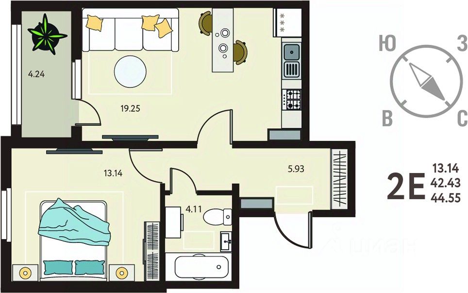 Просторная однокомнатная квартира в ЖК "ИНСТЕП. БАБЯКОВО" на 5 этаже. Квартира без отделки, после оформления собственности можно делать ремонт. Общая площадь: 44.55 кв.м., жилая: 13.14 кв.м., площадь просторной кухни-столовой: 19.25 кв.м. Все окна выходят на одну сторону. В квартире одна лоджия, один совмещенный санузел. Высота потолков 2.64 м.