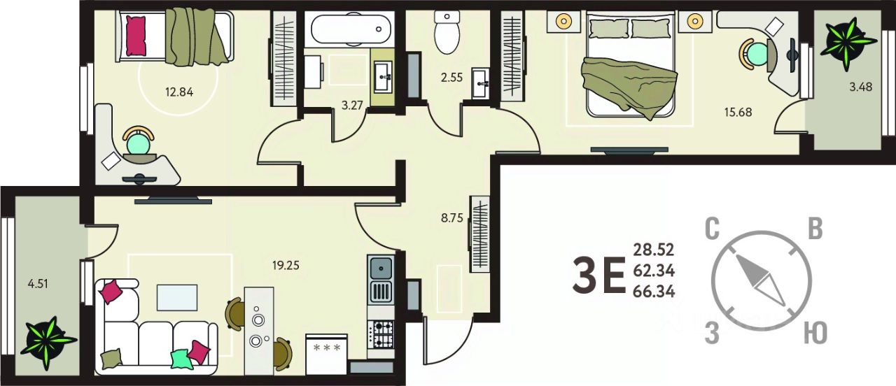 Продается 2-комн. квартира от застройщика в ЖК "ИНСТЕП. БАБЯКОВО" на 5 этаже. Квартира без отделки, полностью готова к ремонту. Общая площадь: 66.34 кв.м., жилая: 28.52 кв.м., площадь просторной кухни-столовой: 19.25 кв.м. Квартира - распашонка, без проходных комнат, окна выходят на paзные стороны дома. В квартире один балкон, один раздельный санузел. Высота потолков 2.64 м.