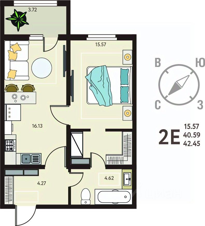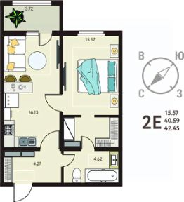 1-комн. квартира в ЖК "ИНСТЕП. БАБЯКОВО" на 12 этаже. Квартира без отделки, новый владелец может сделать ремонт по своему дизайн-проекту. Общая площадь: 42.45 кв.м., жилая: 15.57 кв.м., площадь просторной кухни-столовой: 16.13 кв.м. Все окна выходят на одну сторону. В квартире один балкон, один совмещенный санузел. Высота потолков 2.64 м.