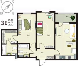 2-комн. квартира от застройщика в ЖК "ИНСТЕП. БАБЯКОВО" на 5 этаже. Квартира без отделки, новый владелец может сделать ремонт по своему дизайн-проекту. Общая площадь: 70.16 кв.м., жилая: 29.85 кв.м., площадь просторной кухни-столовой: 18.8 кв.м. Комнаты изолированные, все окна выходят на одну сторону. В квартире одна лоджия, два совмещенных санузла. Высота потолков 2.64 м.