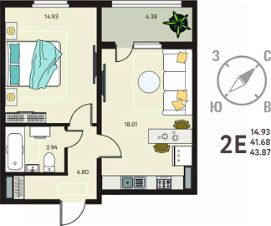 1-комн. квартира от застройщика в ЖК "ИНСТЕП. БАБЯКОВО" на 5 этаже. Квартира без отделки, новый собственник может сделать ремонт по индивидуальному проекту. Общая площадь: 43.87 кв.м., жилая: 14.93 кв.м., площадь просторной кухни-столовой: 18.01 кв.м. Все окна выходят на одну сторону. В квартире одна лоджия, один совмещенный санузел. Высота потолков 2.64 м.