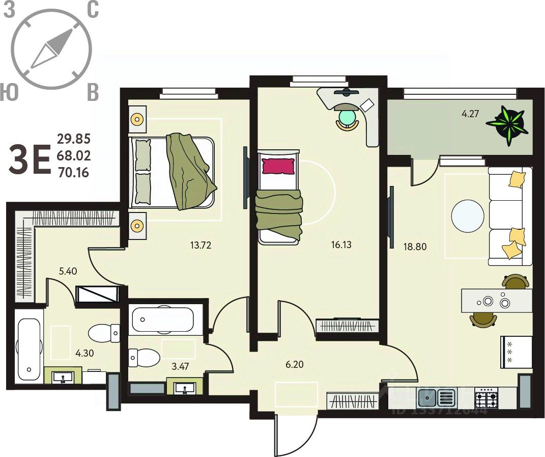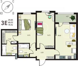 Просторная двухкомнатная квартира в ЖК "ИНСТЕП. БАБЯКОВО" на 12 этаже. Квартира без отделки, после получения ключей можно делать ремонт. Общая площадь: 70.16 кв.м., жилая: 29.85 кв.м., площадь просторной кухни-столовой: 18.8 кв.м. Комнаты изолированные, все окна выходят на одну сторону. В квартире одна лоджия, два совмещенных санузла. Высота потолков 2.64 м.