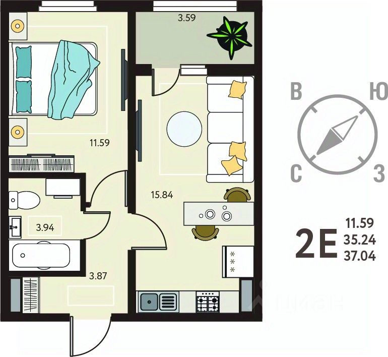 Продается 1-комн. квартира в ЖК "ИНСТЕП. БАБЯКОВО" на 12 этаже. Квартира без отделки, новый владелец может сделать ремонт по своему дизайн-проекту. Общая площадь: 37.04 кв.м., жилая: 11.59 кв.м., площадь просторной кухни-столовой: 15.84 кв.м. Все окна выходят на одну сторону. В квартире одна лоджия, один совмещенный санузел. Высота потолков 2.64 м.