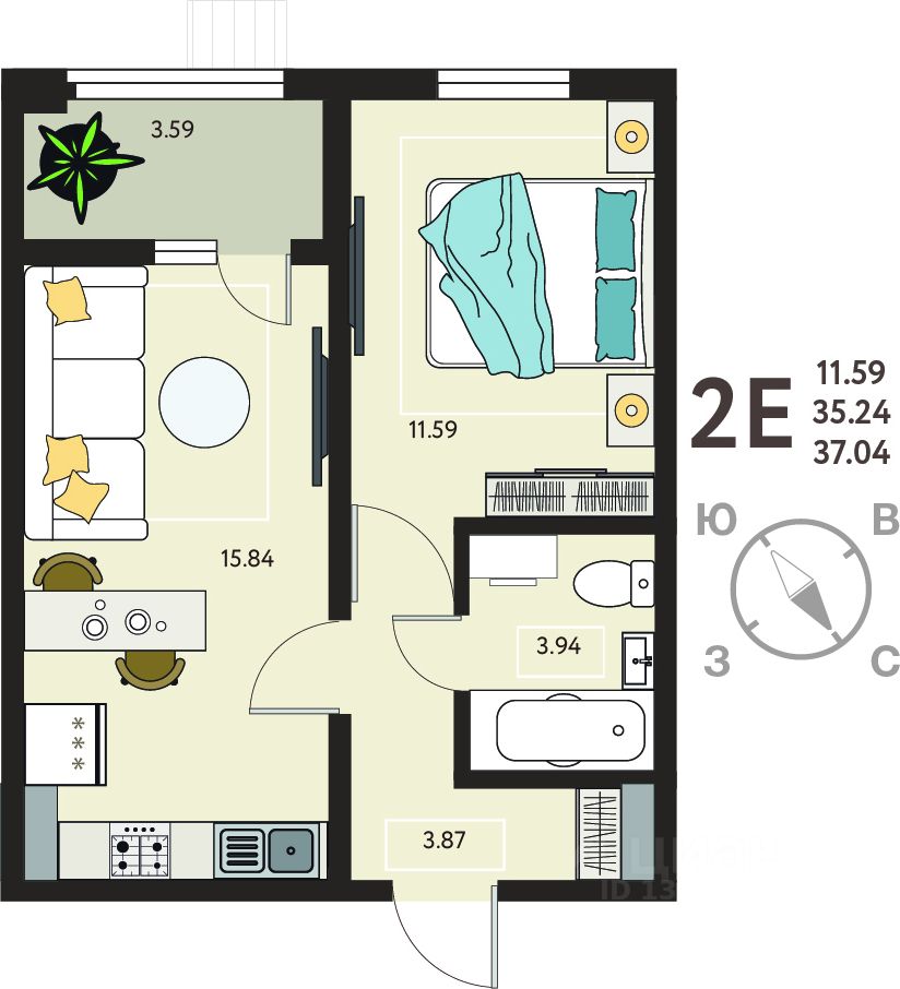1-комн. квартира с отделкой в ЖК "ИНСТЕП. БАБЯКОВО" на 8 этаже. Общая площадь: 37.04 кв.м., жилая: 11.59 кв.м., площадь просторной кухни-столовой: 15.84 кв.м. Все окна выходят на одну сторону. В квартире одна лоджия, один совмещенный санузел. Высота потолков 2.64 м.