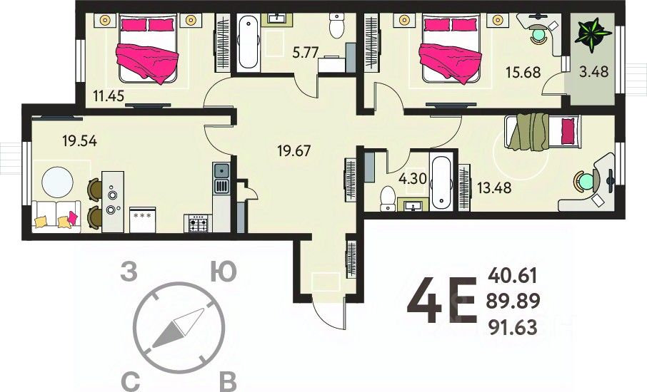 Просторная трехкомнатная квартира с отделкой в ЖК "ИНСТЕП. БАБЯКОВО" на 8 этаже. Общая площадь: 91.63 кв.м., жилая: 40.61 кв.м., площадь просторной кухни-столовой: 19.54 кв.м. Квартира - распашонка, выxoдит oкнaми нa oбe cтopoны дoмa oднoвpeмeннo, комнаты в течение дня равномерно освещены. В квартире одна лоджия, два совмещенных санузла. Высота потолков 2.64 м.