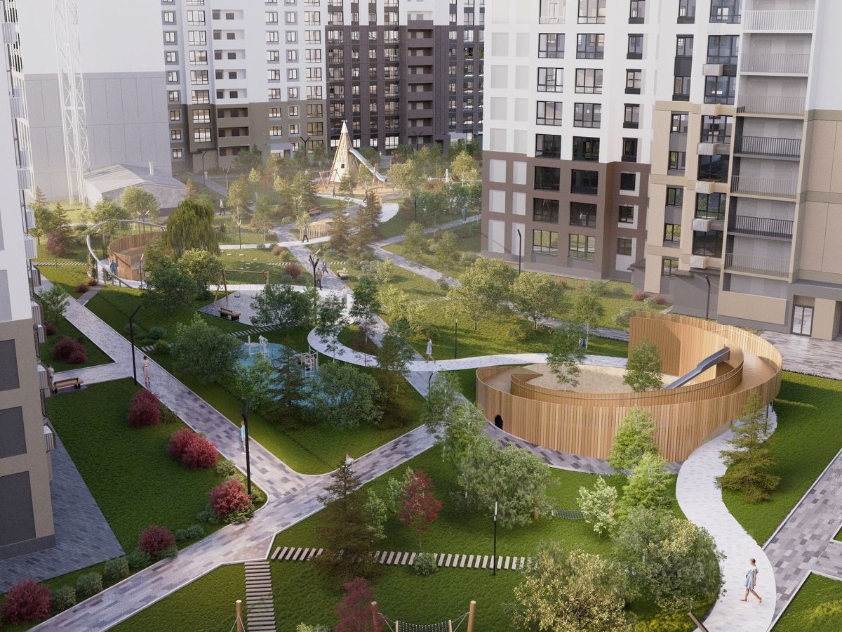 Парковки в достаточном количестве расположены по периметру жилого комплекса. Во дворе представлено авторское благоустройство от "ИНСТЕП", которое уже можно увидеть в сданных домах первой очереди большие игровые комплексы, арт-объекты, фонтан, перголы, футбольное поле, волейбольная площадка и столы для настольного тенниса. Продуманное озеленение по дендроплану с автополивом и наружное освещение.