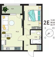Однокомнатная квартира с отделкой в ЖК "ИНСТЕП. БАБЯКОВО" на 8 этаже. Общая площадь: 40.77 кв.м., жилая: 11.59 кв.м., площадь просторной кухни-столовой: 19.25 кв.м. Все окна выходят на одну сторону. В квартире одна лоджия, один совмещенный санузел. Высота потолков 2.64 м.