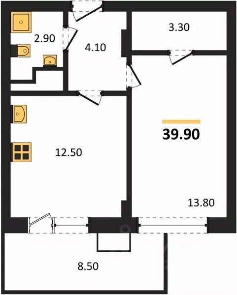 Квартира: 1 к 39,90 кв.м., 1 этаж в комплексе Ключи CLUB, 2 очередь, корп.2, сдача: 4кв. , этажей: 14, адрес Воронеж г., Остужева ул., д. 52/5, Застройщик: Новый код.