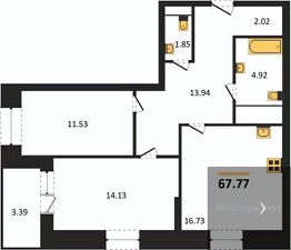 Квартира: 2 к 67,77 кв.м., 18 этаж в комплексе Галилей, 1 очередь, корп.2, сдача: 3кв. , этажей: 25, адрес Воронеж г., Кривошеина ул., д. 13/14, Застройщик: ГК Крайс.