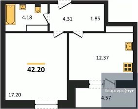 Квартира: 1 к 42,20 кв.м., 11 этаж в комплексе Галилей, 1 очередь, корп.3, сдача: 3кв. , этажей: 25, адрес Воронеж г., Кривошеина ул., д. 13/14, Застройщик: ГК Крайс.