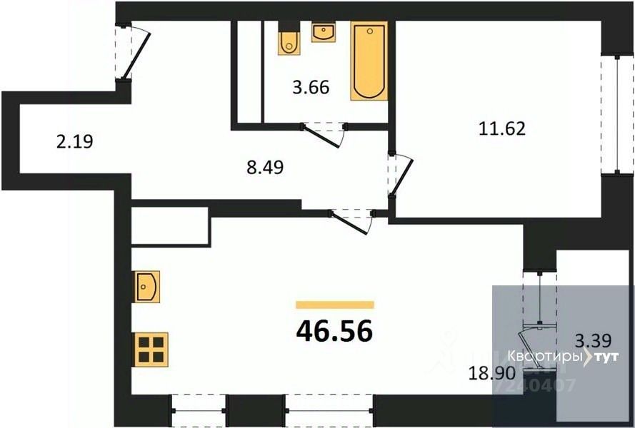 Квартира: 1 к 46,56 кв.м., 9 этаж в комплексе Галилей, 1 очередь, корп.3, сдача: 3кв. , этажей: 25, адрес Воронеж г., Кривошеина ул., д. 13/14, Застройщик: ГК Крайс.
