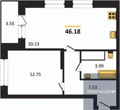 Квартира: 1 к 46,18 кв.м., 14 этаж в комплексе Галилей, 1 очередь, корп.3, сдача: 3кв. , этажей: 25, адрес Воронеж г., Кривошеина ул., д. 13/14, Застройщик: ГК Крайс.