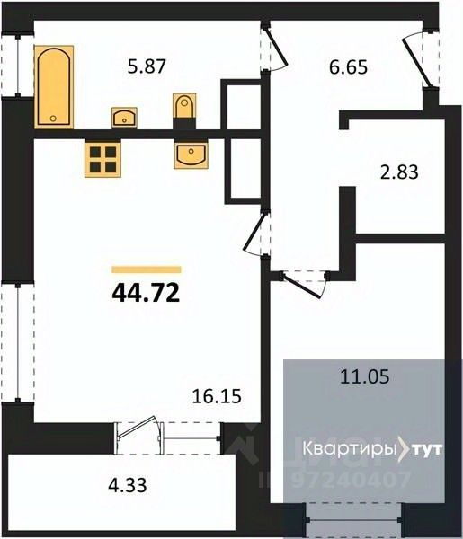 Квартира: 1 к 44,72 кв.м., 11 этаж в комплексе Галилей, 1 очередь, корп.3, сдача: 3кв. , этажей: 25, адрес Воронеж г., Кривошеина ул., д. 13/14, Застройщик: ГК Крайс.