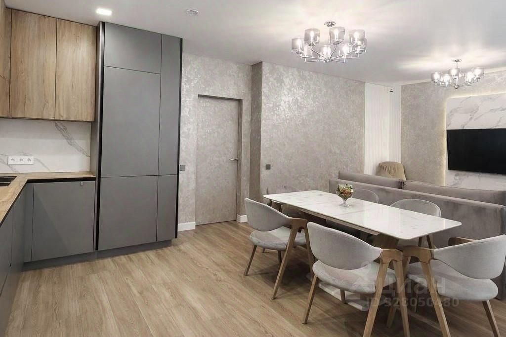 Светлая кухня-гостиная 34 м² с объединённой лоджией, три изолированные комнаты, гардеробная, два санузла — идеальная планировка для семьи.