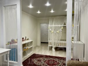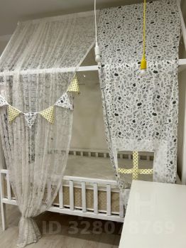 Просторная детская комната 18,90 кв.м., с выделенной спальной зоной и игровой.