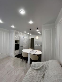 Кухня-гостиная площадью 20,87 м² оборудована современной техникой и мебелью.
