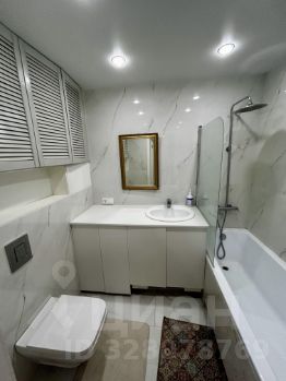 Ванная комната совмещенная, оформлена в светлых тонах с качественной сантехникой.