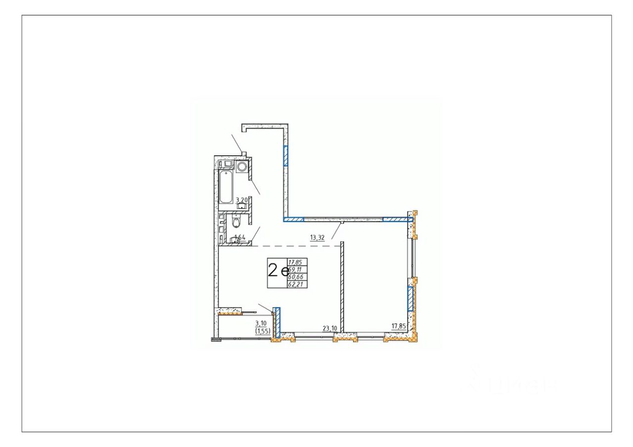 Продаётся 2-комнатная квартира в строящемся доме (Дом 1), срок сдачи: IV-кв. 2027, общей площадью 60.66 кв.м., на 8 этаже.