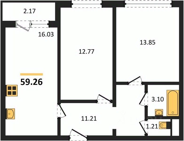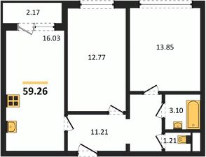 Квартира: 2 к 59,26 кв.м., 2 этаж в комплексе Ю, 3 очередь, корп.3, сдача: 3кв. , этажей: 15, адрес Воронеж г., Цимлянская ул., д. 10Г, Застройщик: Еврострой.