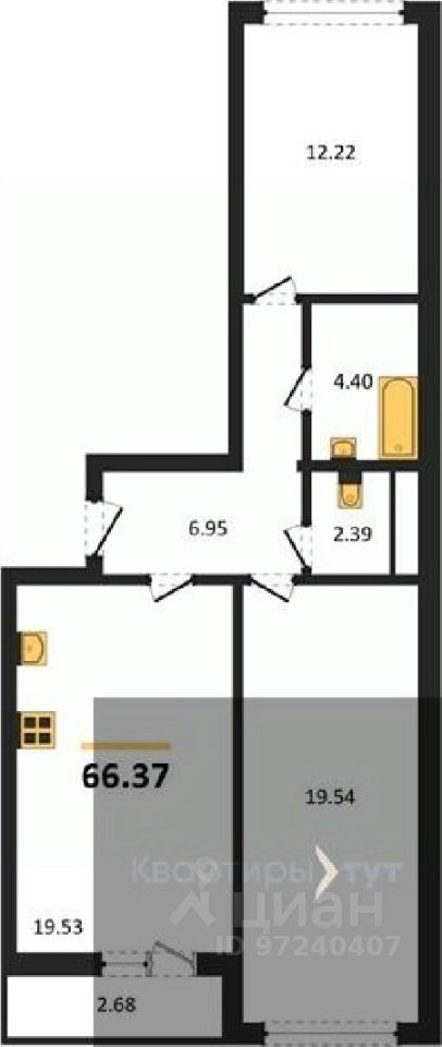 Квартира: 2 к 66,37 кв.м., 12 этаж в комплексе Ю, 3 очередь, корп.3, сдача: 3кв. , этажей: 15, адрес Воронеж г., Цимлянская ул., д. 10Г, Застройщик: Еврострой.