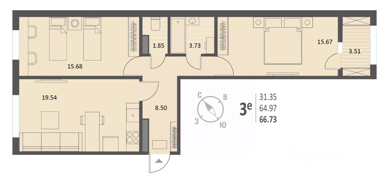 Продаётся 2-комнатная квартира в сданном доме (Краснознамённая, 72), срок сдачи: IV-кв. 2025, общей площадью 66.73 кв.м., на 5 этаже. Жилой комплекс расположен в Ленинском районе Воронежа, в 5 минутах от Цирка, на пересечении улиц Краснознаменная и Чапаева. В шаговой доступности школа и детские сады, а на первом этаже жилого дома предусмотрено помещение под продуктовый супермаркет и другие коммерческие площади.