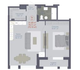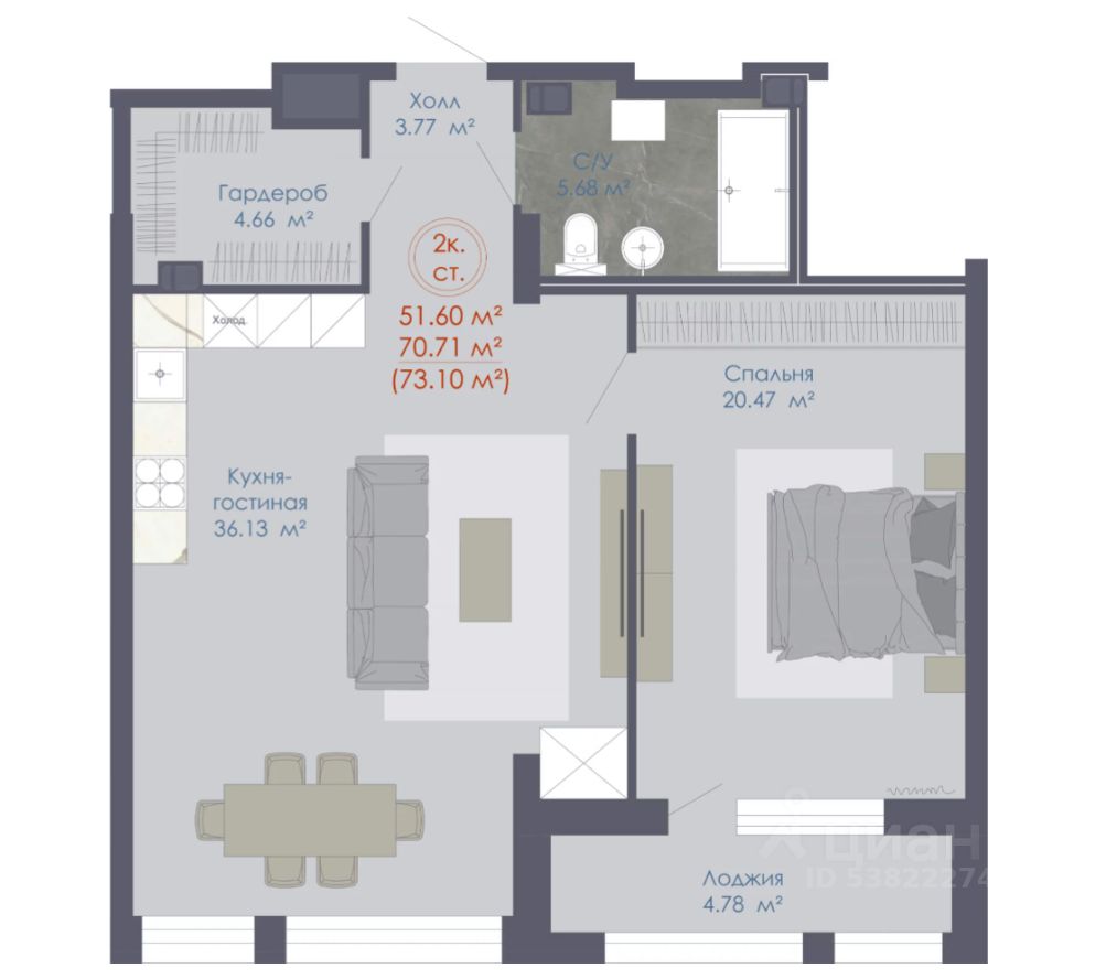 Продаётся 2-комнатная квартира в строящемся доме (Дом 1), срок сдачи: I-кв. 2026, общей площадью 73.32 кв.м., на 21 этаже. Новый жилой комплекс "48" от группы компаний "Семья" расположен по адресу: г. Воронеж, по ул. пр-кт Труда.