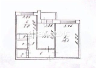 две изолированные комнаты (11,6 м2 и 19,2 м2) и стандартная кухня (8 м2) с окнами на одну сторону;