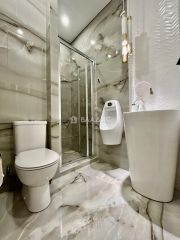 Два санузла: один с душевой кабиной и писсуаром, второй — с ванной, большой душевой и биде.
