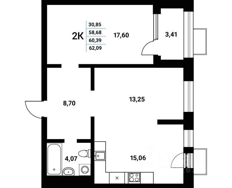 Продаётся 2-комнатная квартира в сданном доме (Чуева, 7 (2 этап) ), срок сдачи: III-кв. 2025, общей площадью 60.39 кв.м., на 11 этаже. Новый жилой комплекс "Z-town" от Специализированного застройщика "Новый Код" расположен на набережной Чуева в г. Воронеж.