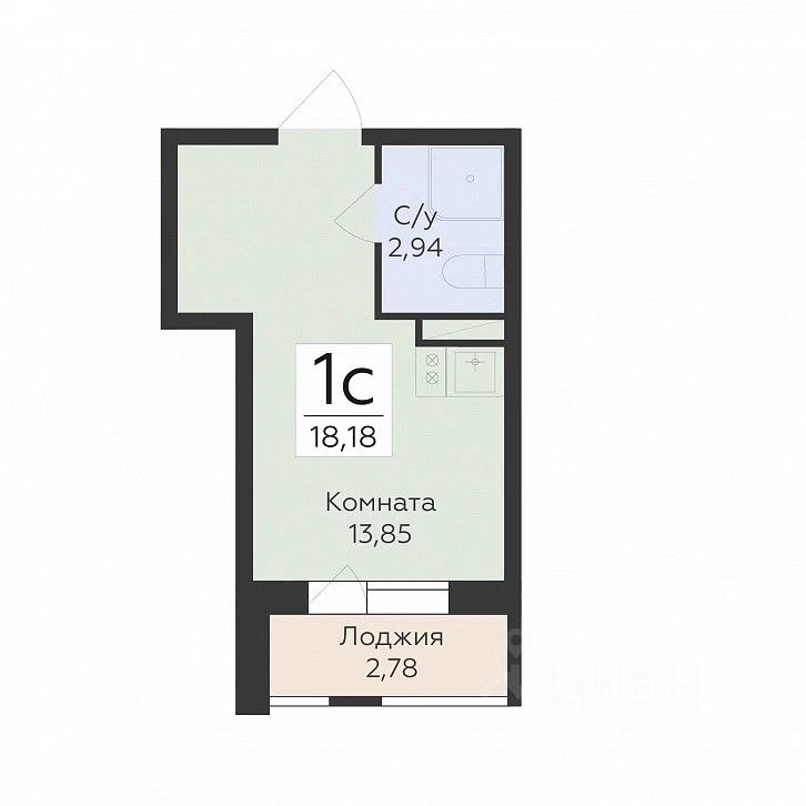 Продаю студию с ремонтом 18,18 кв.м. на 12 этаже в 4 секции жилого комплекса комфорт-класса Квартал 45.