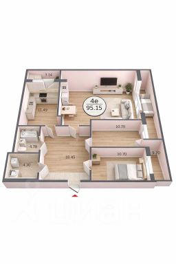 Кстати о планировке: почти 19 кв.м занимает только прихожая — можно поставить огромный шкаф или сделать гардеробную. Санузел раздельный — удобно для большой семьи.